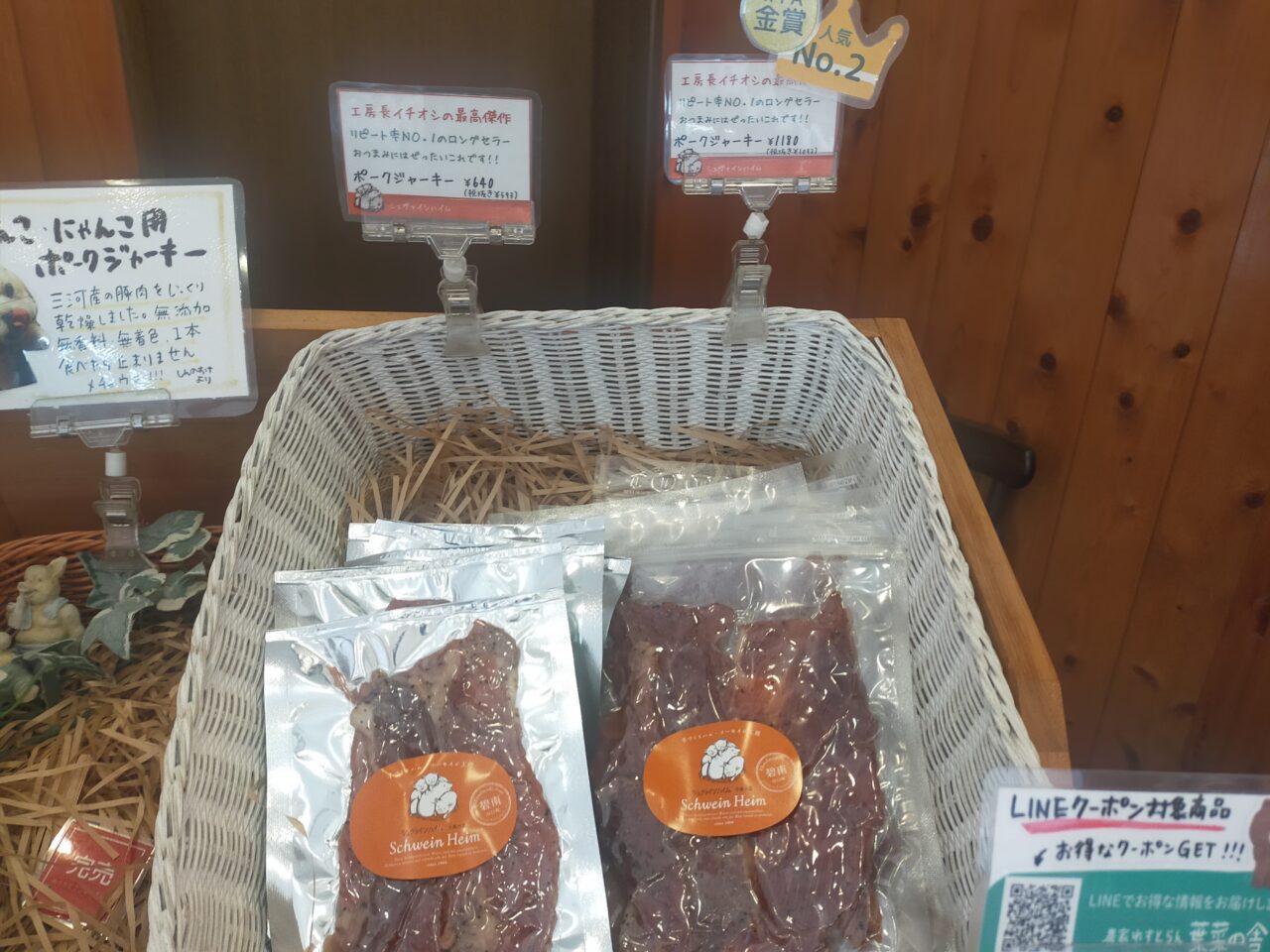 わんちゃんや猫ちゃん用のポークジャーキーも♪↓