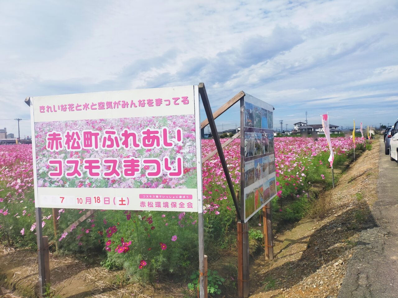 赤松町のコスモス畑の見頃をお見逃しのないよう、お天気のいい日に足を運んでみてはいかがでしょうか?