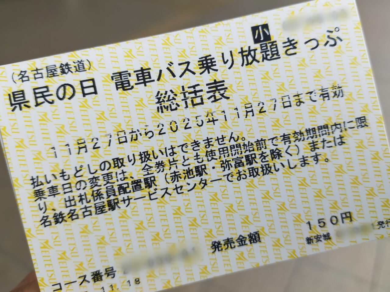 2025年11月27日は「あいち県民の日」です。名鉄の小児用の切符「県民の日 電車バス乗り放題きっぷ」が販売されているのをご存じでしょうか?