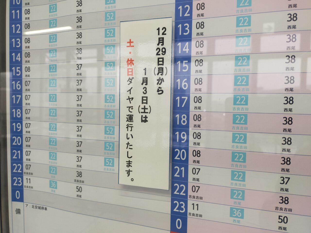 【安城市・高浜市・碧南市】年末年始の公共交通機関のダイヤ変更にお気をつけください。