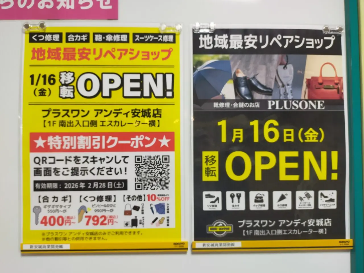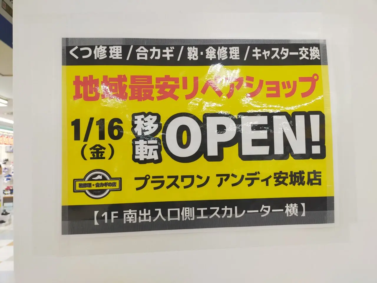 【安城市】アンディ1階に地域最安リペアショップ「プラスワン アンディ安城店」が1月16日移転オープン予定です。