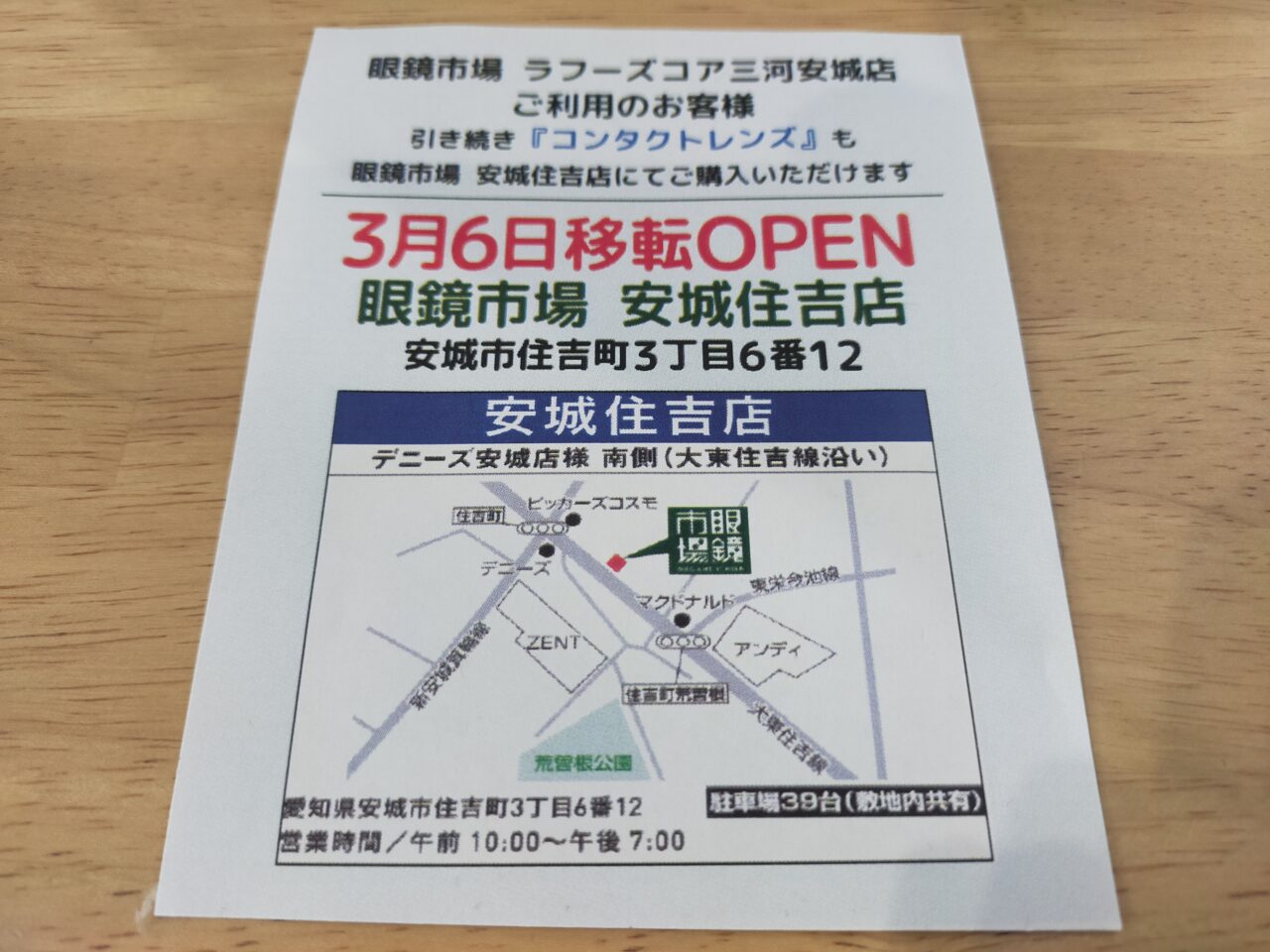 また、3月6日に住吉町で、移転オープンという形で新しく「眼鏡市場 安城住吉店」さんがオープンするようです!