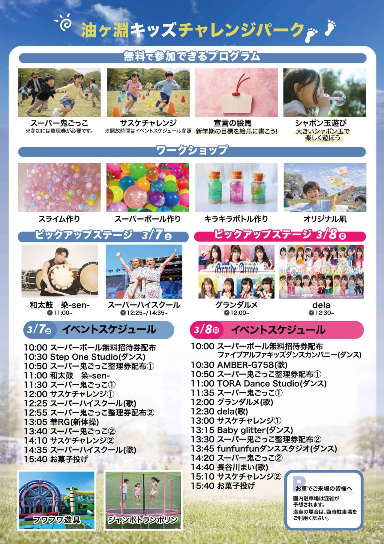 2026年3月7日(土)・8日(日)に油ヶ淵水辺公園 自然ふれあい生態園で、「油ヶ淵キッズチャレンジパーク」が開催されます♪