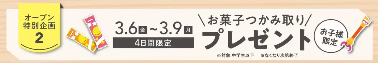 期間中、中学生以下のお客様は、お菓子つかみ取りに参加できます。