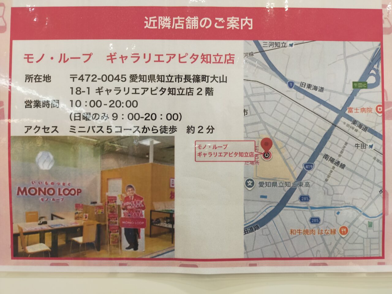 近隣店舗のご案内も出ていますので、今後モノ・ループさんを利用したい方は、ご確認をお願いいたします↓
