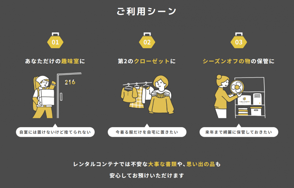 趣味の道具・衣類・季節家電・大切な書類や思い出の品まで、幅広い用途でご活用いただけます。