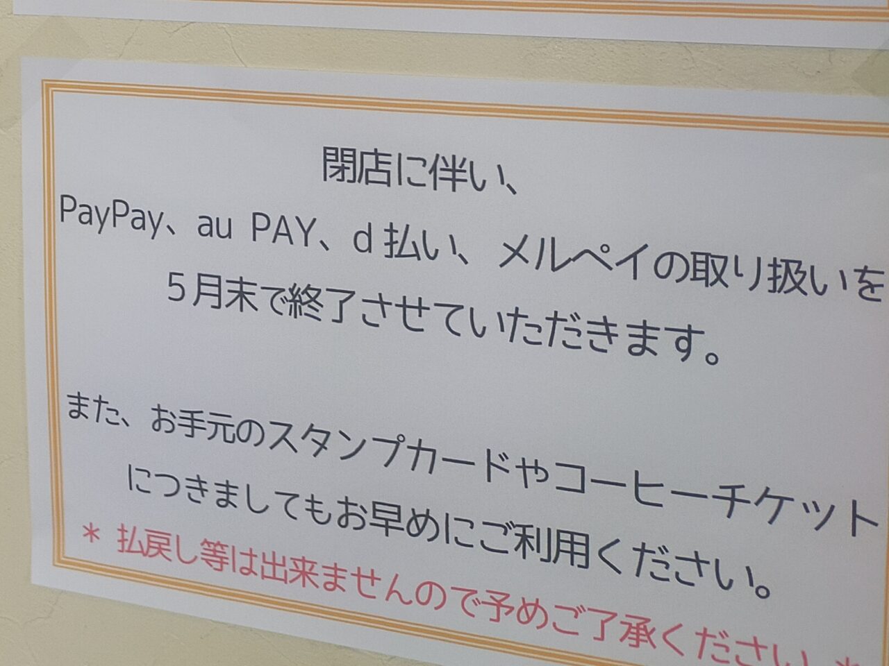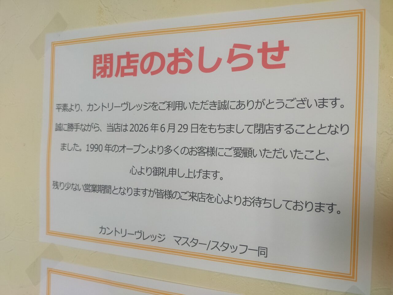 お店にも閉店をお知らせする貼り紙がされていましたので、ご確認ください。