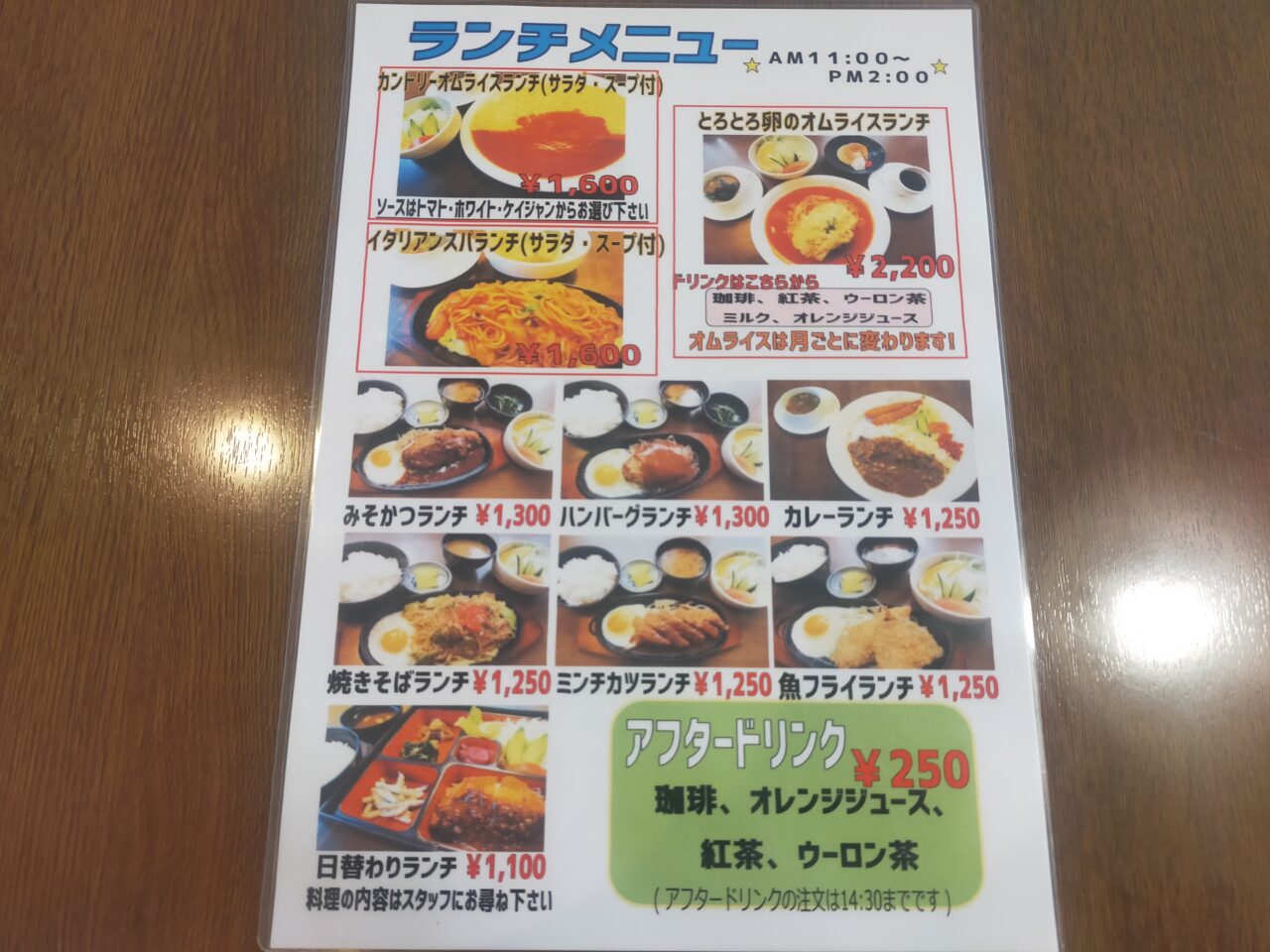 ランチメニューは、こちら↓