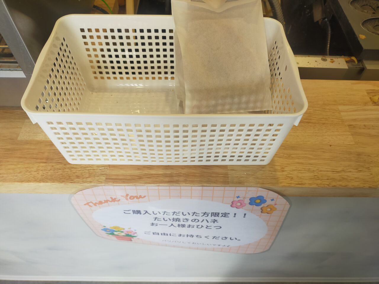 タイミングが良ければ、購入した方限定で「たい焼きのハネ」が1人1つもらえるサービスもあるので、訪れた際はぜひチェックしてみてください◎
