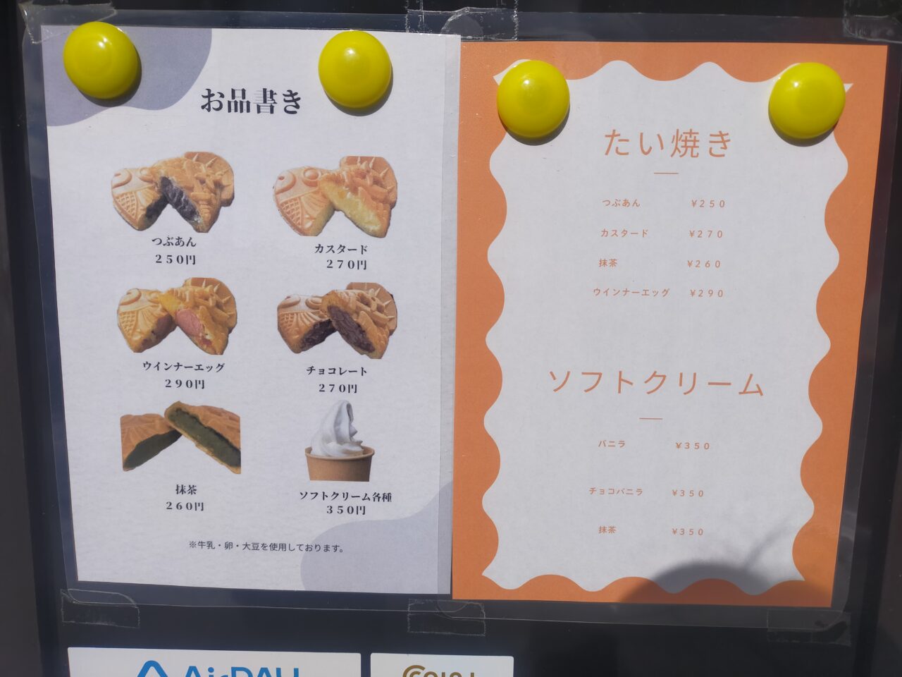 たい焼きは、定番のつぶあんをはじめ、カスタード、ウインナーエッグ、チョコレート、抹茶というラインナップ。