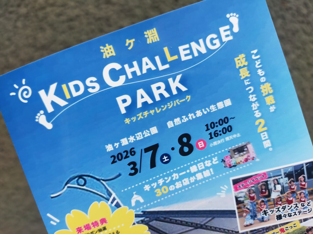 2026年3月7日(土)・8日(日)に油ヶ淵水辺公園 自然ふれあい生態園で、「油ヶ淵キッズチャレンジパーク」が開催されます♪