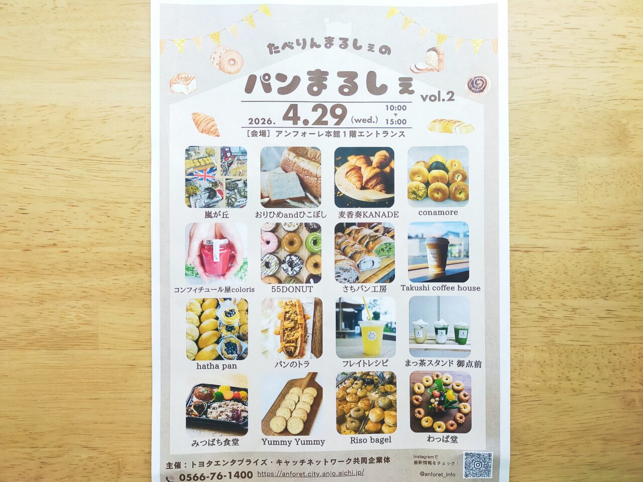 【安城市】パンやベーグルやカフェドリンクの人気店が大集合!「パンまるしぇvol.2」がアンフォーレで4月29日開催♪